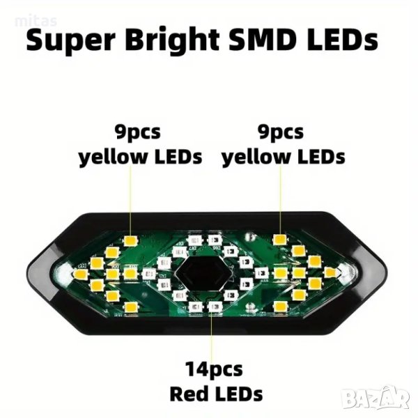 Задна LED светлина с МИГАЧИ, Безжично управление, Звуков сигнал, USB
