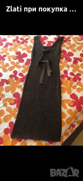 Спортна рокля по тялото, плетена с ламе, шоколадово кафяво в комбинация със златисто, универсален размер