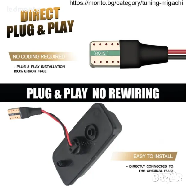* **Лесен монтаж** с директно свързване към оригиналния кабел