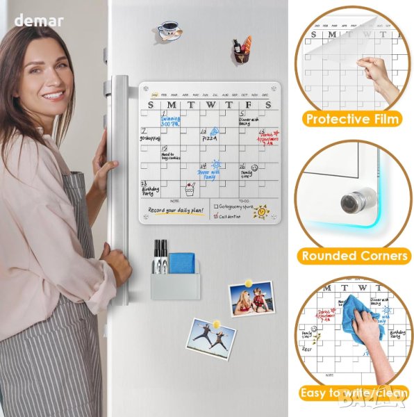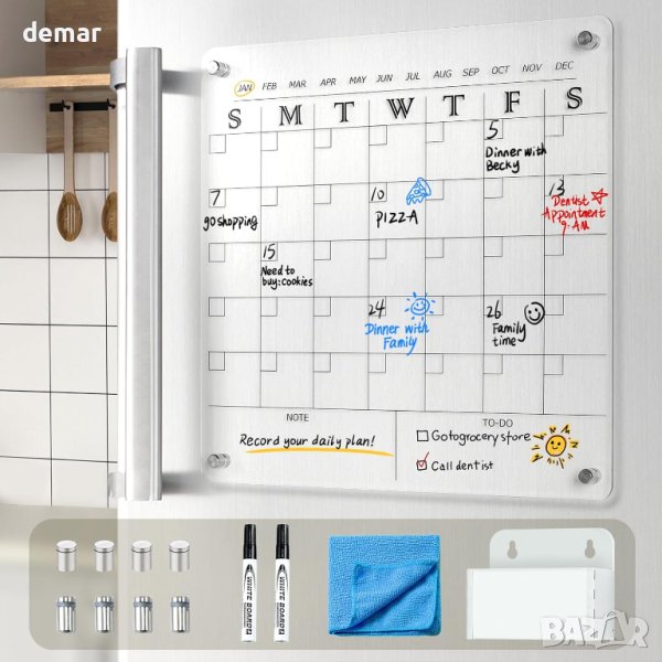 MAKELLO Магнитен акрилен стенен месечен планер, включва 2 химикалки, държач за химикалки, магнити