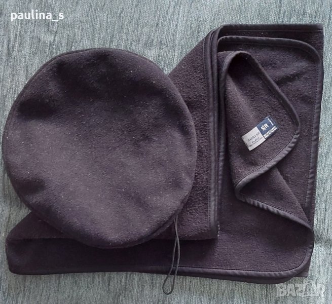 1. "Roots" athletics - Марков комплект от шапка тип барета и шал от мекичък полар в черно - цена 19,99лв. Шапката е брандирана с бродирано лого и се регулира с ластичен механизъм 56см до 64см. Шалът е обазован - луксозна серия - 152см / 30см. Подходящ е за преходните и хладни сезони. Без дефекти, една бройка.