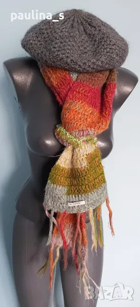 - Марков плетен шал "Pieces" 200см / 18см преждата е мека и съдържа мохер и акрил, не е нов, без дефекти е.