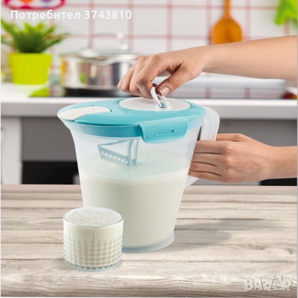 Пластмасовата кана е одобрена за употреба в хранителната промишленост в съответствие с международните стандарти за качество и отговаря на всички изисквания за контакт с хранителни продукти.Подходящa за употреба в съдомиялна машина.С ръчката на капака разбърквате вашата напитка, лесно и ефективно. Бъркалката по цялата дължина на каната, гарантира качествено разбъркана и хомогенна смес. Плътният капак, пази от пръски докато бъркате. Подходяща е също за млечни шейкове, лимонада и всякакви плодови напитки.