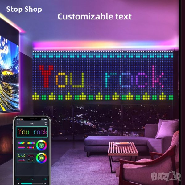 - 【Smart Control】 Инсталирайте безплатното приложение iDeal LED за iOS и Android. Настройте светлините си за секунди с помощта на приложението. Удобно управлявайте и персонализирайте своите светлини за завеси: включете/изключете ги, регулирайте яркостта, затъмнете, създайте групи и др. Насладете се на безпроблемно и рационализирано осветление.(Забележка: Продуктът продължава да използва старата опаковка без Super RGB ЛОГО. Ако имате нещо против, моля, купувайте с повишено внимание! ! !)
