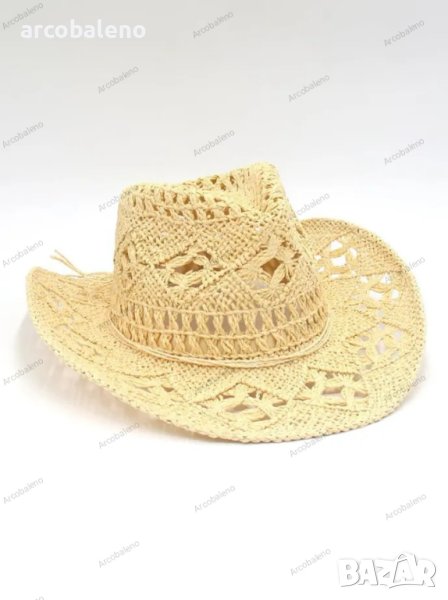Ръчно плетена каубойска сламена шапка с повдигната периферия, 5цвята