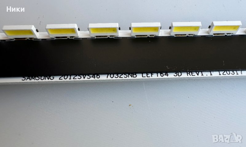 ЛЕД ЛЕНТИ SAMSUNG 2012SVS46 7032SNB LEFT64 3D REV1.1 120317 / SAMSUNG 2012SVS46 7032SNB RIGHT64 3D REV1.1 120317 от телевизор Samsung UE46ES8000. LED лентите са работещи и свалени от работещ телевизор с проблем в дисплея както се вижда на снимките. Изпращам по ЕКОНТ с опция тест и преглед!!! С оглед и проба на това, че модулите нямат гаранция, след прегледа, теста и заплащането не приемам възражения и ракламации, щото предварително всички платки и модули са тествани и в изправно състояние се пращат!!!