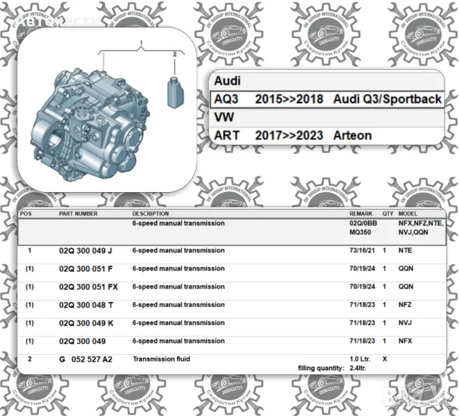 Ръчна скоростна кутия - Audi Q3/Volkswagen Arteon - 2.0 TDI - (2015 г.+) - (6 степенна)