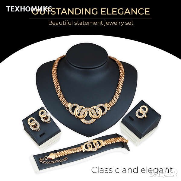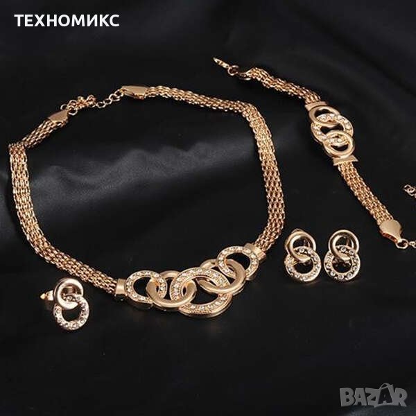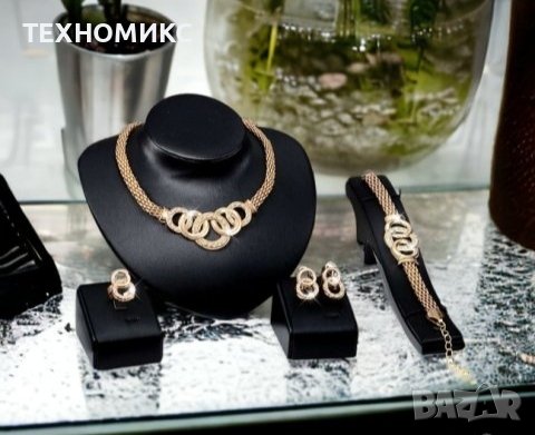 Всичко, от което една жена се нуждае за бляскава визия - модерен комплект с луксозно колие, гривна, пръстен и обеци!