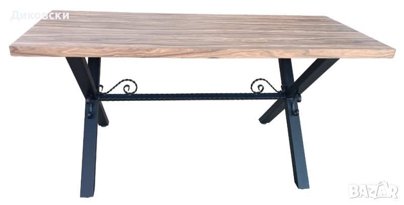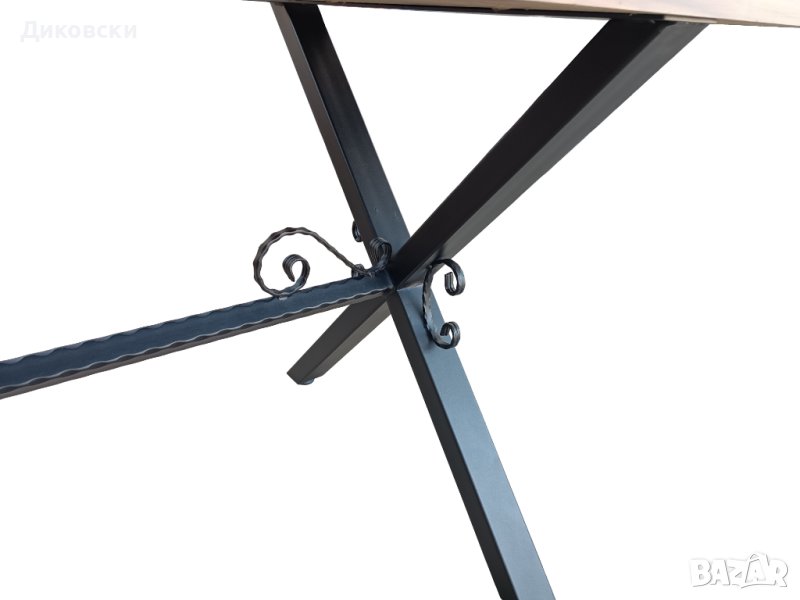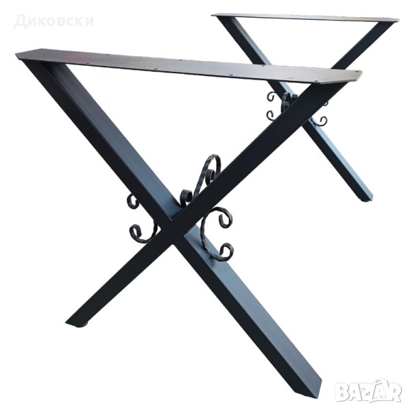 Метална основа за трапезна маса Х образна за градина с орнаменти. Здрава заварена конструкция от профил 60х40х2мм. Отдолу са предвидени регулируеми крачета при неравен под за избягване на клатене.