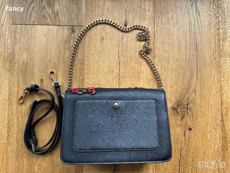 Красива дамска чанта Mango с декорация от бродирани цветя и мъниста.