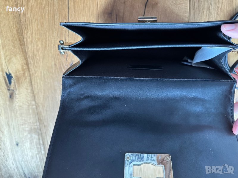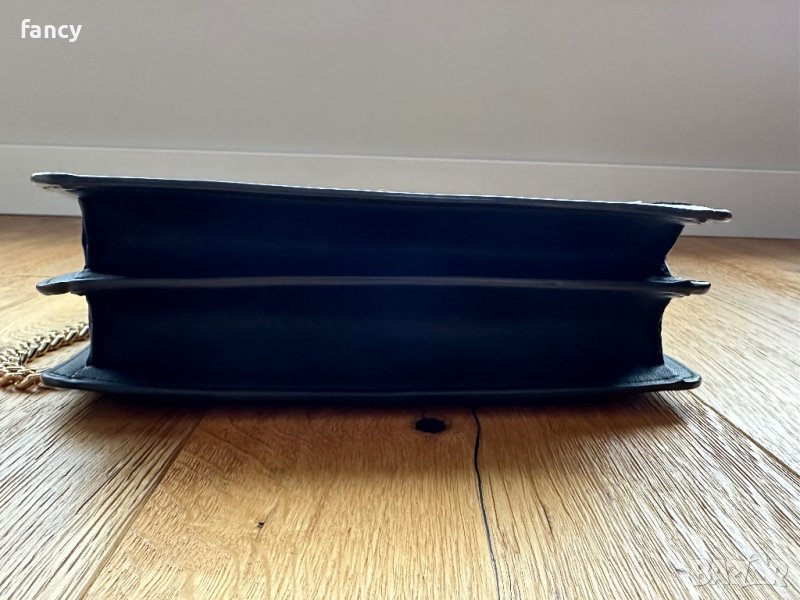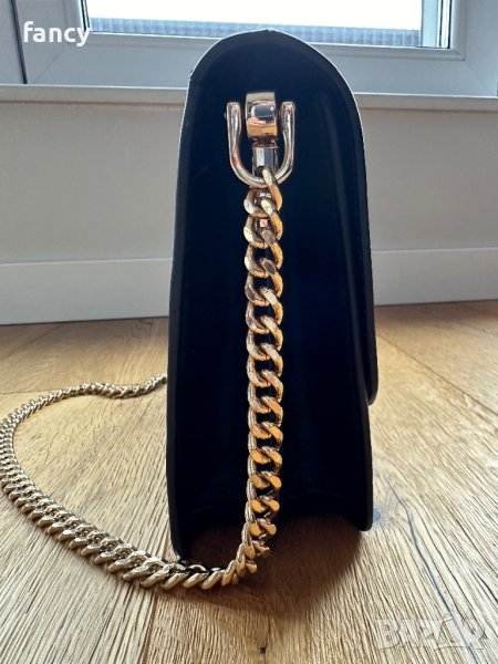 С къса неподвижна дръжка златиста верига и дълга подвижна кожена дръжка.