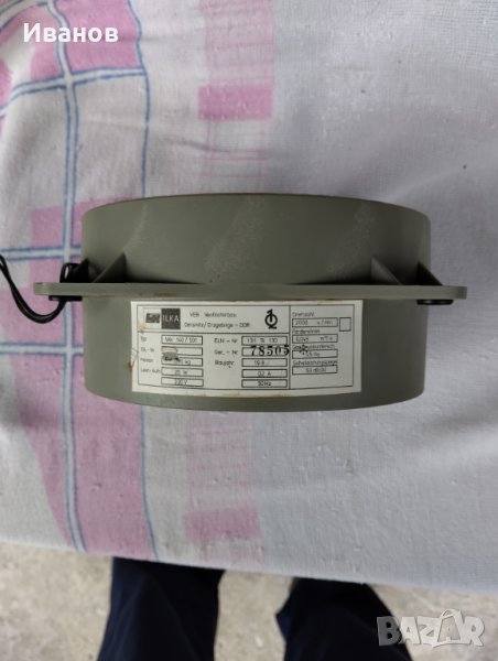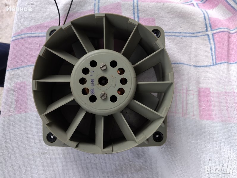 Вентилатор, производство на ГДР. Корпусът и перката са пластмасови, размери 15х15 см. / Ф 15см /. За района на София може и лично предаване.