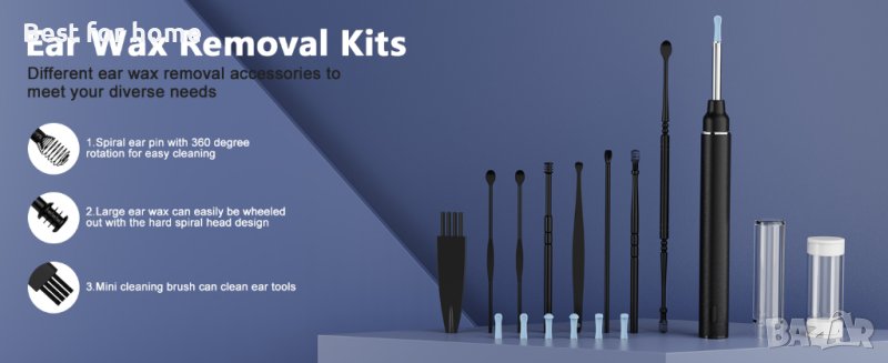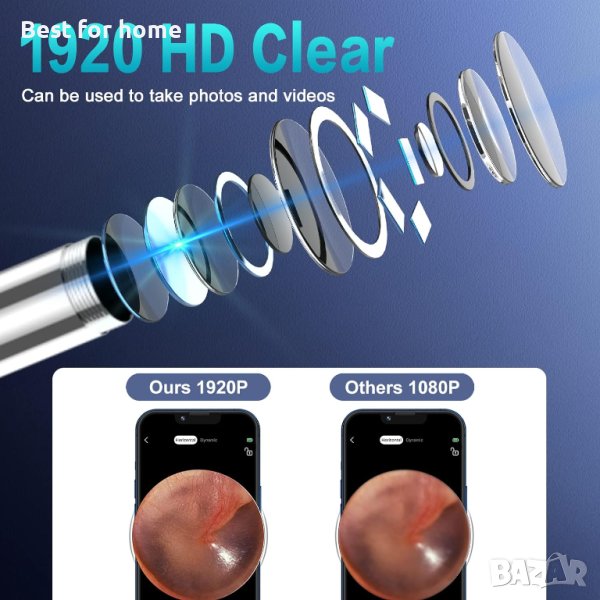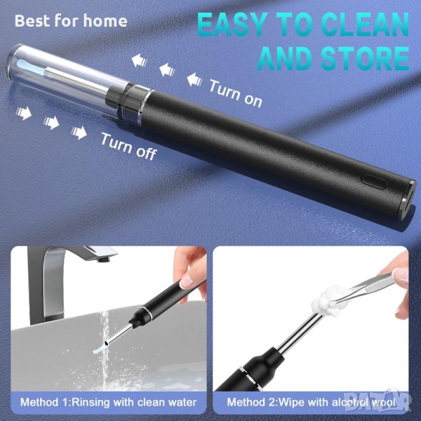 Обективът на камерата за ушна кал е водоустойчив и може да се избърсва с вода или алкохолен памук след употреба. (Тялото не е водоустойчиво)