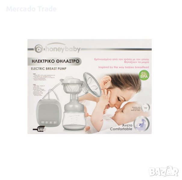 Eлектрическа помпа за кърма Mercado Trade със силно засмукване, изработена от PP материал (0% BPA), без химикали, устойчива на високи температури. Има силиконова подложка, удобна е и лесна за носене. Вдъхновен от начина, по който бебетата сучат.