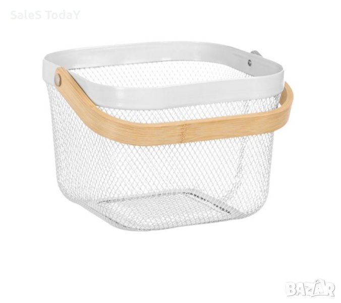 Кошница метална екрю дървена дръжка 24.5x24.5x18см. Код 1227029Перфорирана метална кошница в почти бял цвят с дървена дръжка за лесно транспортиране. Идеален е за организиране и съхранение на малки предмети в кухнята, банята, килера или спалнята. Цвят Екрю Материал на продукта Метал Дърво Дължина x ширина x височина 24,5x24,5x18 см Капацитет (lt) 11.0
