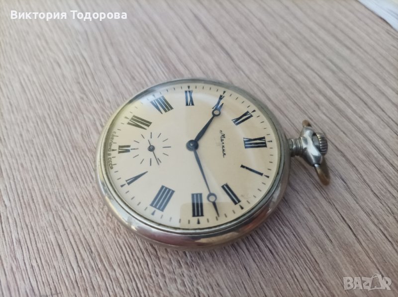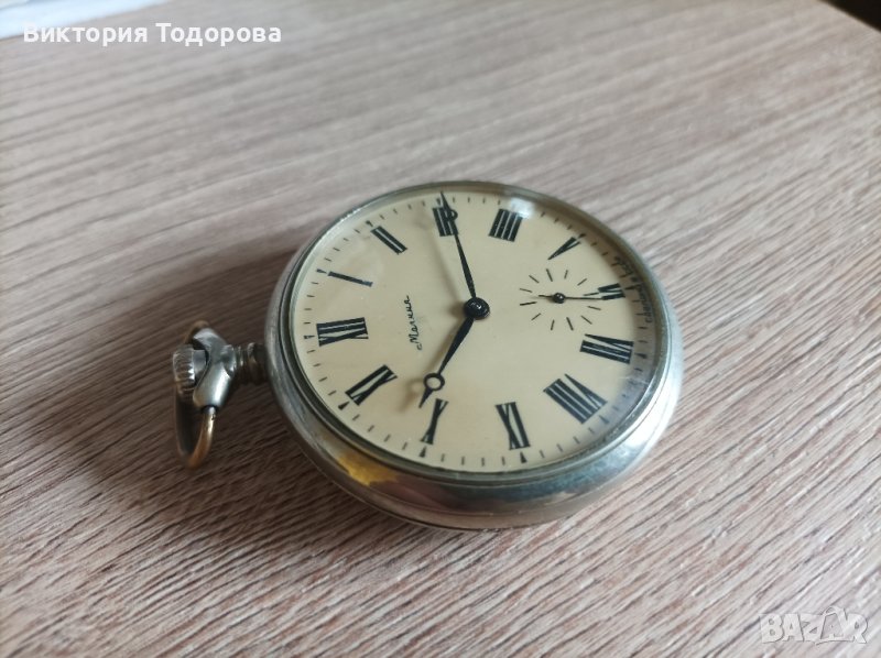 Здравейте! Предлагам джобен часовник Молния профилактиран от часовникар. Работи коректно. Произведен в СССР. Добро общо състояние без износване на фигурата на задния капак.
