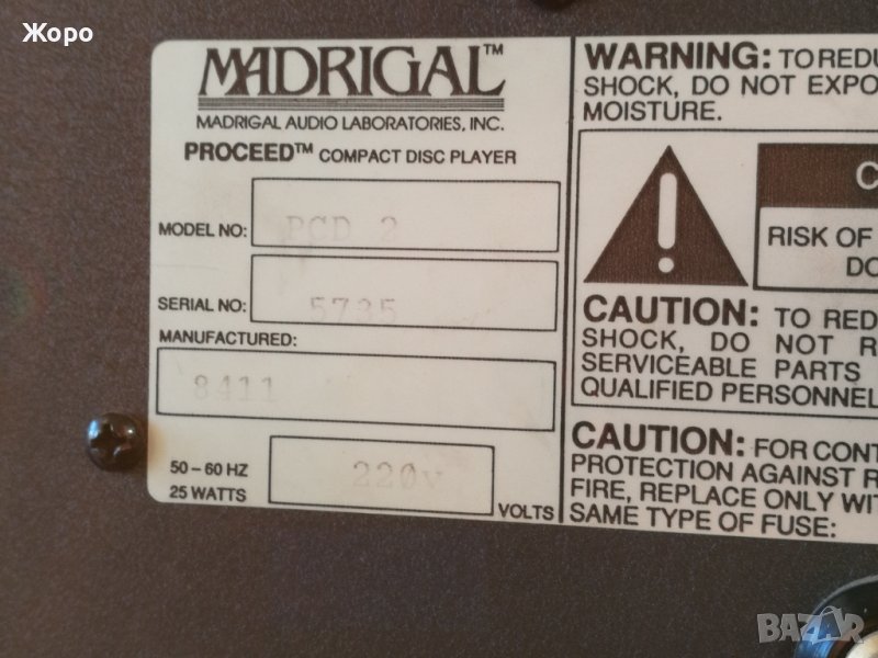 Висок клас CD player Madrigal PCD2 съдържащ два отделни Transport PDT2 и DAC PDP2 2x18bit 2xPCM58P в независими схеми (напълно независими буквално).