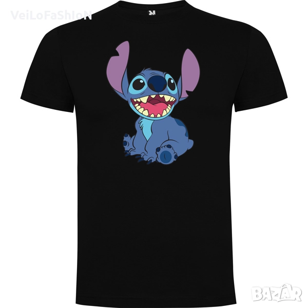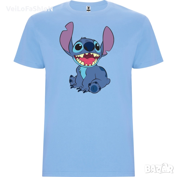 Новa детска тениска в бял, черен или светлосин цвят с героя Стич от Stitch& Lilo, произведена от 100% памук с плътност на тениската 190гр./м². Тениската е с тънко деколте съдържащо ликра за по -добра здравина при обличане. Подходяща както за ежедневна употреба, така и за спорт или тренировка в свободното време.