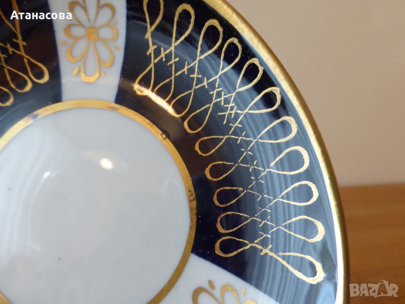 Декорация в кобалтово синьо, ръчно рисувани орнаменти със златно мастило, златни кантове