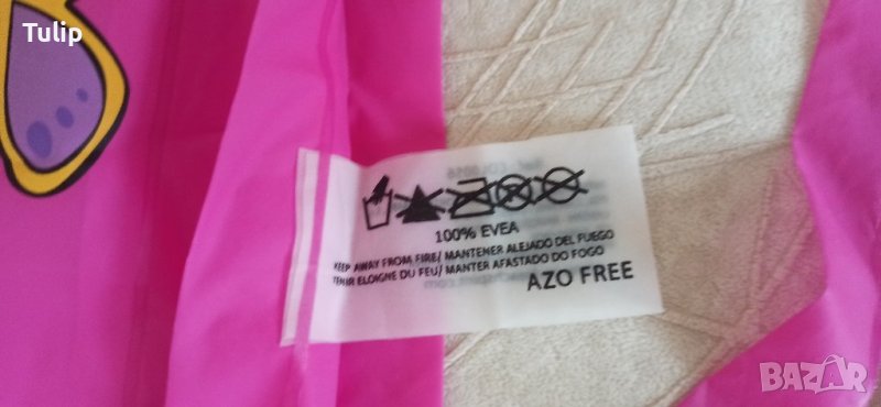 цикламен дъждобран в чантичка.запазен в отлично състояние без забележки. подходящ за 5-6 г. възраст, но може да се ползва и от по-малко дете.