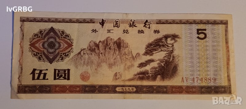 5 юана 1979 Китай Чуждестранен валутен сертификат 外汇兑换券 中國銀行 伍圆 一九七九年 → Обява 44464300