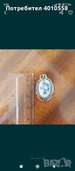 - снимка 9: Античен френски медальон от порцелан върху сребърна основа в синьо с цветя. ЦЕНА 80лв.