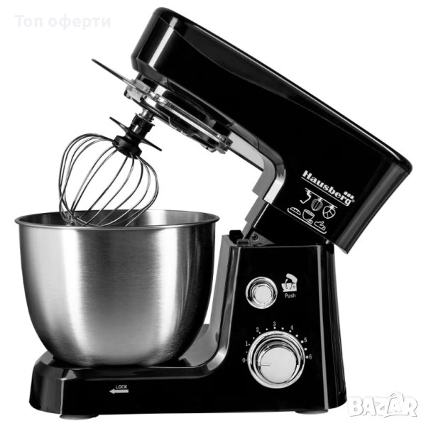 Планетарен миксер с иноксова купа Hausberg HB-7625NG, 700 W, 3.5 литра, Черен