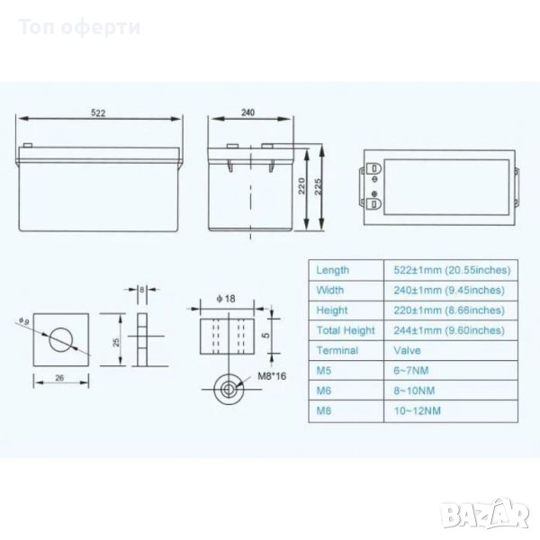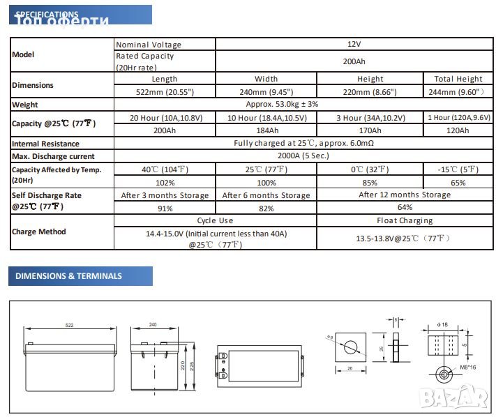 PNG батерия Гел батерия с преден терминал 6GFM200G (12V200Ah) европейски стандарт
