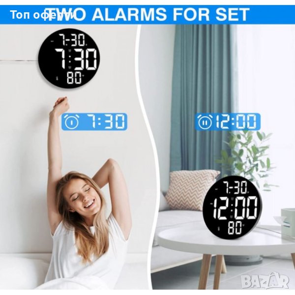 Голям цифров стенен часовник с Plug-in: Голям 9-инчов HD стенен часовник с 3,15-инчов висок, смел LED дисплей, часът и датата се виждат лесно с един поглед. С по-голямо пространство за шрифт вие също така се уверявате, че нашият LED стенен часовник може лесно да вижда часа ясно дори от разстояние.