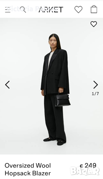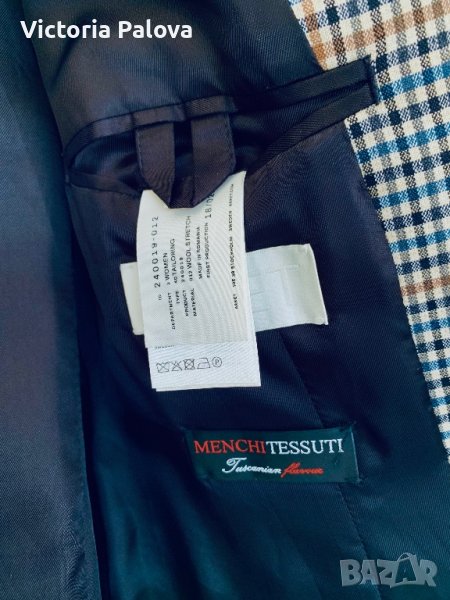 Материя MENCHI - това е история, дълъг път към съвършенство,тежък труд, страст и внимание към детайла. Така се раждат скъпоценни уникални и ексклузивни материи за връхни дрехи, с които Menchi се гордее от 1961г.Сакото Arket е именно от Menchi, не само че е дизайнерски текстил, а също и кройката. Рамо - 50см, ГО - 52см, Талия - 49см, ханш - 54см, дължина - 75см, ръкав - 59,5см. Европейски размер -44.