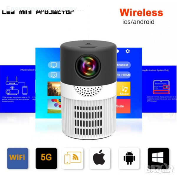 мини проектор за смарт телефон е универсален и преносим проектор, който е идеален за използване както в дома, така и в офиса. Има функция за мащабиране, която ви позволява да се съсредоточите върху вашата презентация или проект, а LED източникът на светлина осигурява ясно и ярко изображение. Проекторът има и вграден мултимедиен плейър, който поддържа различни видео и аудио формати, което го прави идеален избор за гледане на филми или слушане на музика. Компактният дизайн и лекото го правят лесен за носене със себе си в движение, а включената чанта за носене гарантира, че вашият проектор е винаги защитен.