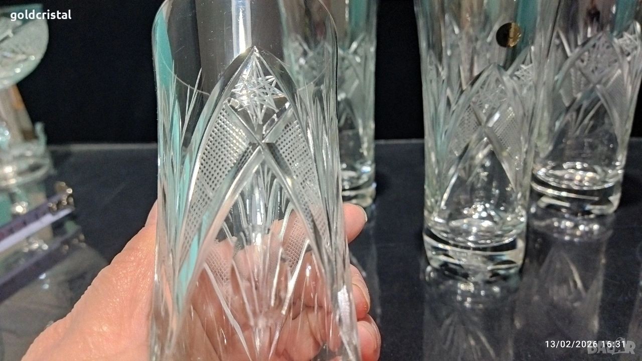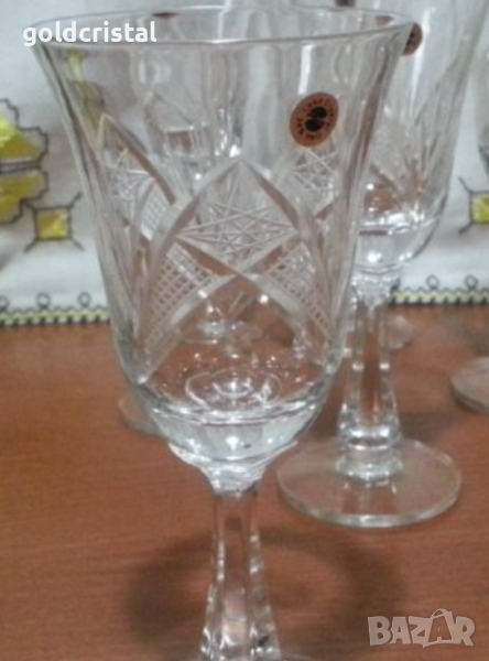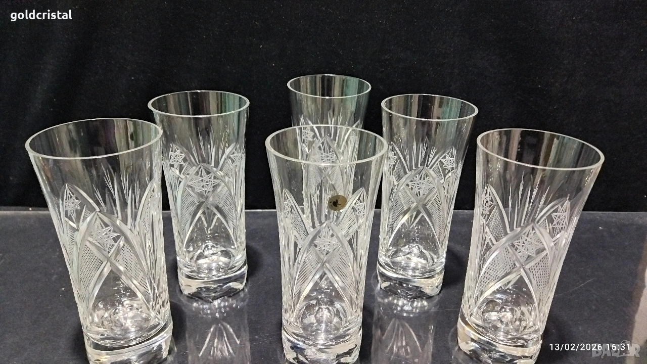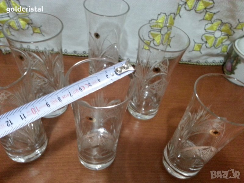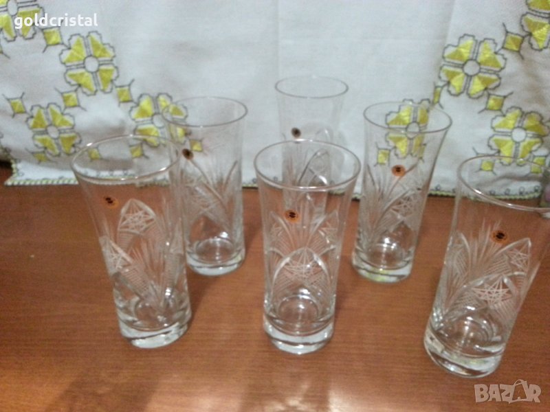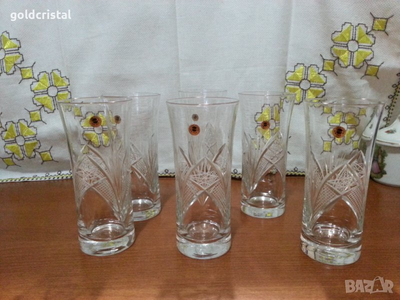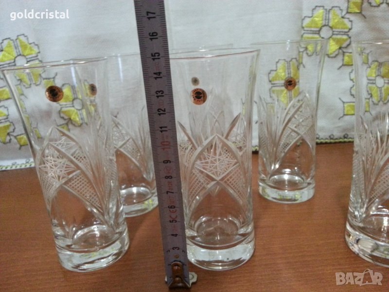 Кристални чаши за вода български кристал серия Зорница ръчно гравирани неизползвани сервиз комплект сет лот ретро арт декор винтидж колекция стари антикварни предмети обзавеждане за дома и семейството подходящи за подарък за ценители и колекционери подходящи за подарък за ценители и колекционери