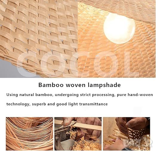 стандартната дължина на проводника е 150 см; материал: бамбук + метал, ръчно тъкан, издръжлив, енергоспестяващ и екологичен, без деформация. Галванична обработка на метални фасунги, защита от ръжда и падане.