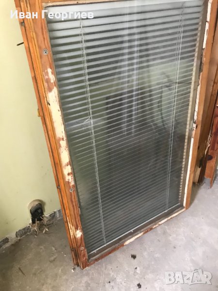 Продавам две крила от дървена дограма с прозорци и алуминиеви щори (без касите). Размери:
