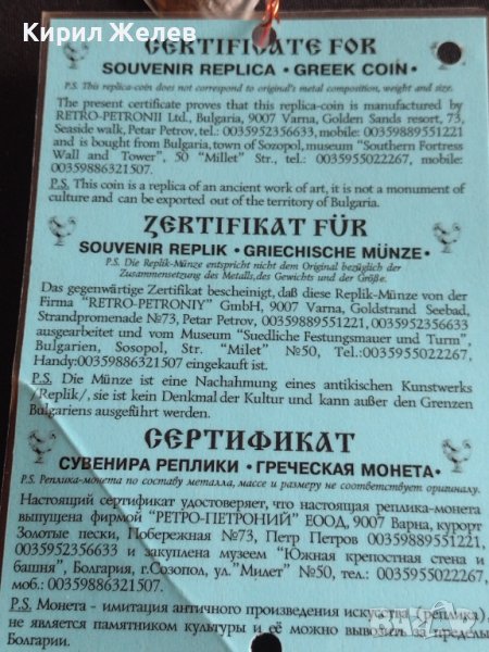 СУВЕНИР РЕПЛИКА ГРЪЦКА МОНЕТА със СЕРТИФИКАТ ЗА КОЛЕКЦИОНЕРИ 42587 → Обява 44472243