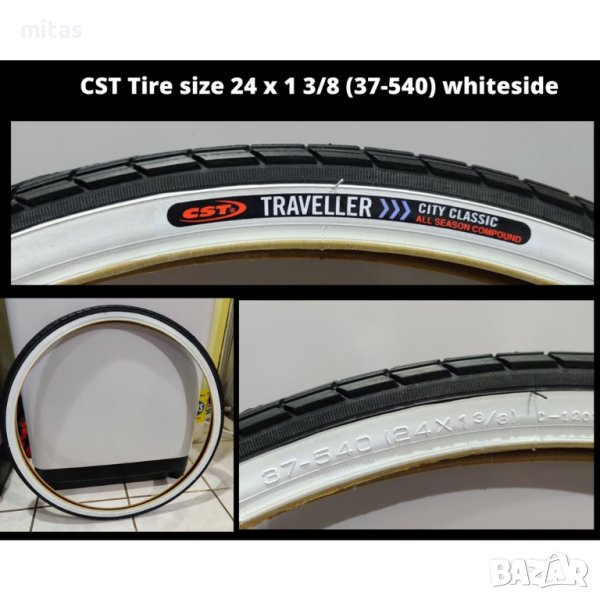 Външна гума за ивалидна количка CST 24 x 1 3/8 (37-540) Черна/бял борд