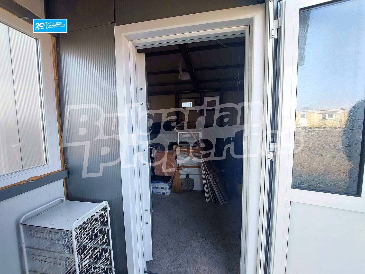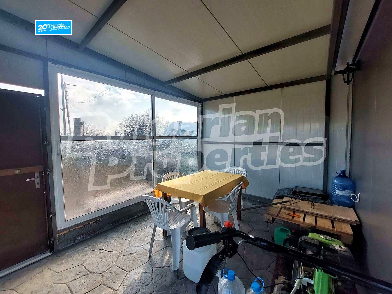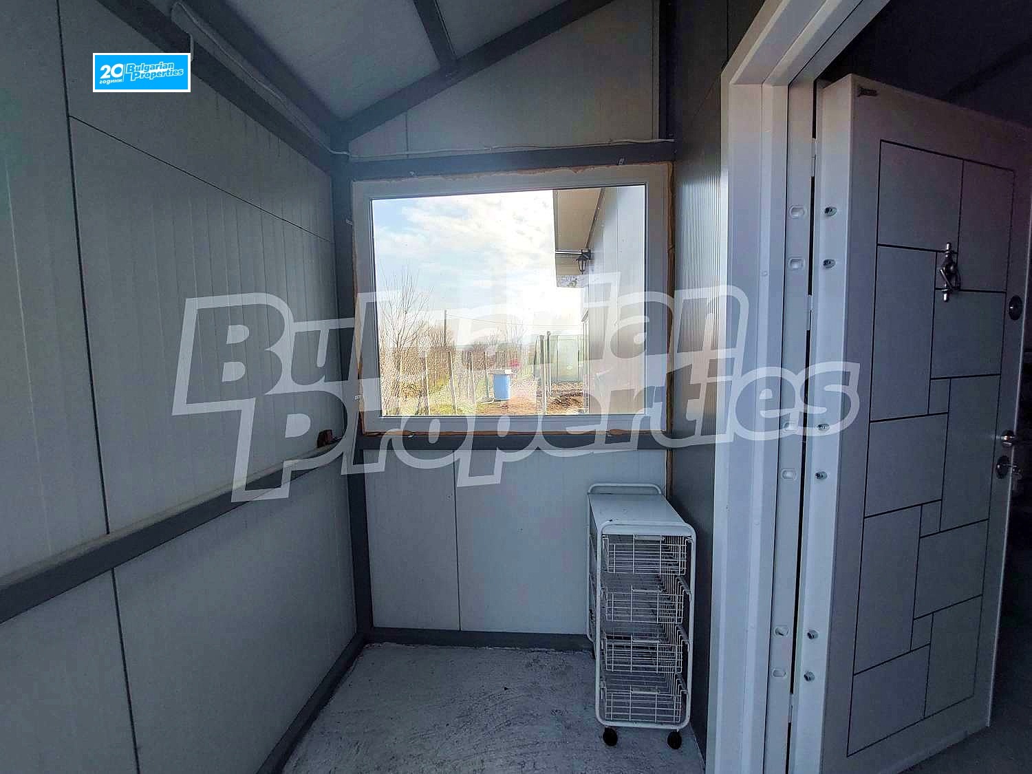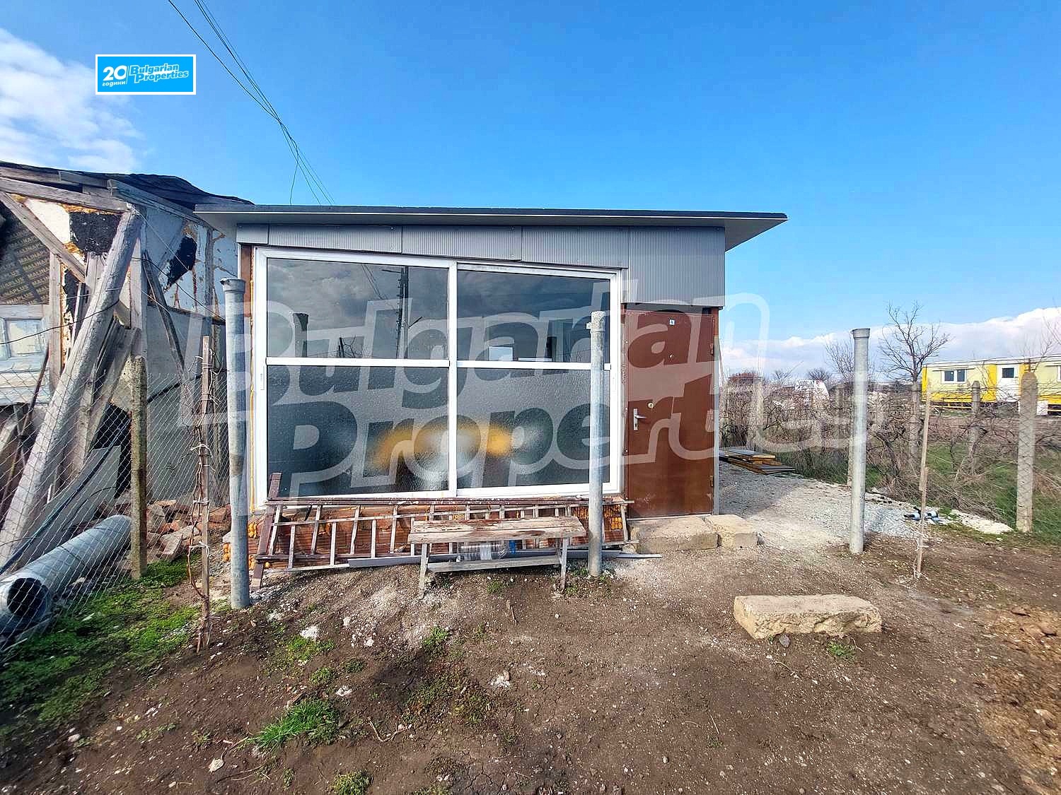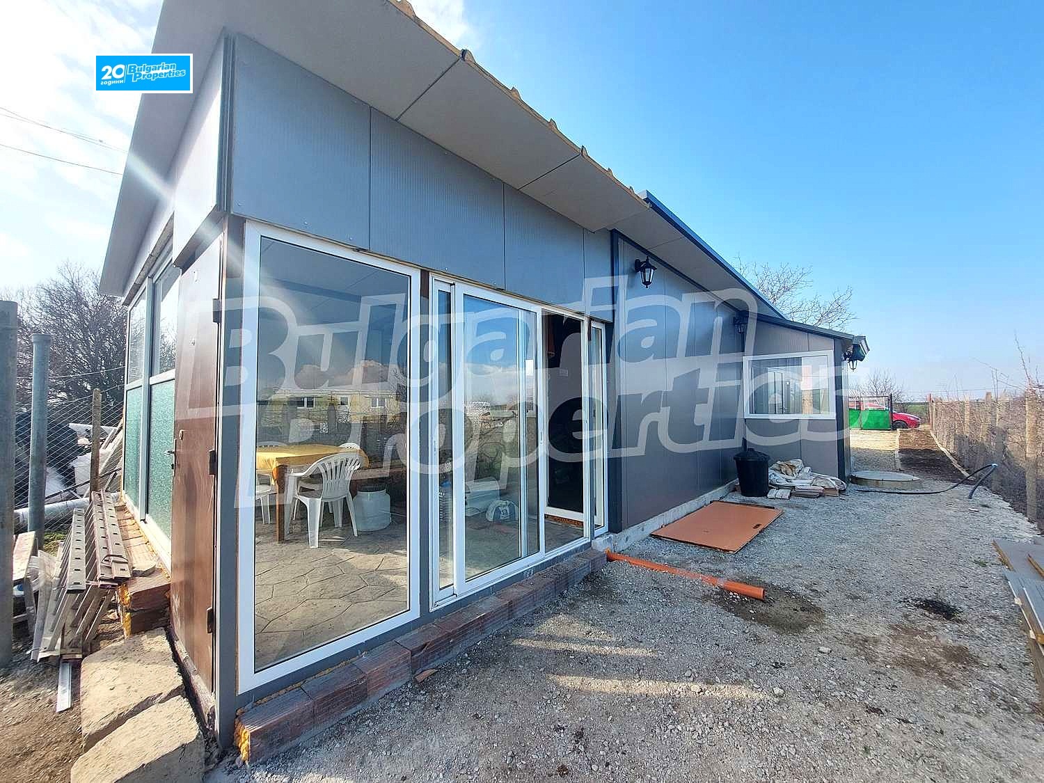 Имотът е сглобяема конструкция с площ 65 кв. м., 45 кв. м. къща и 20 кв. веранда. Постройката разполага със септична яма, както и дълбок сондаж. Има допълнително излята плоча с