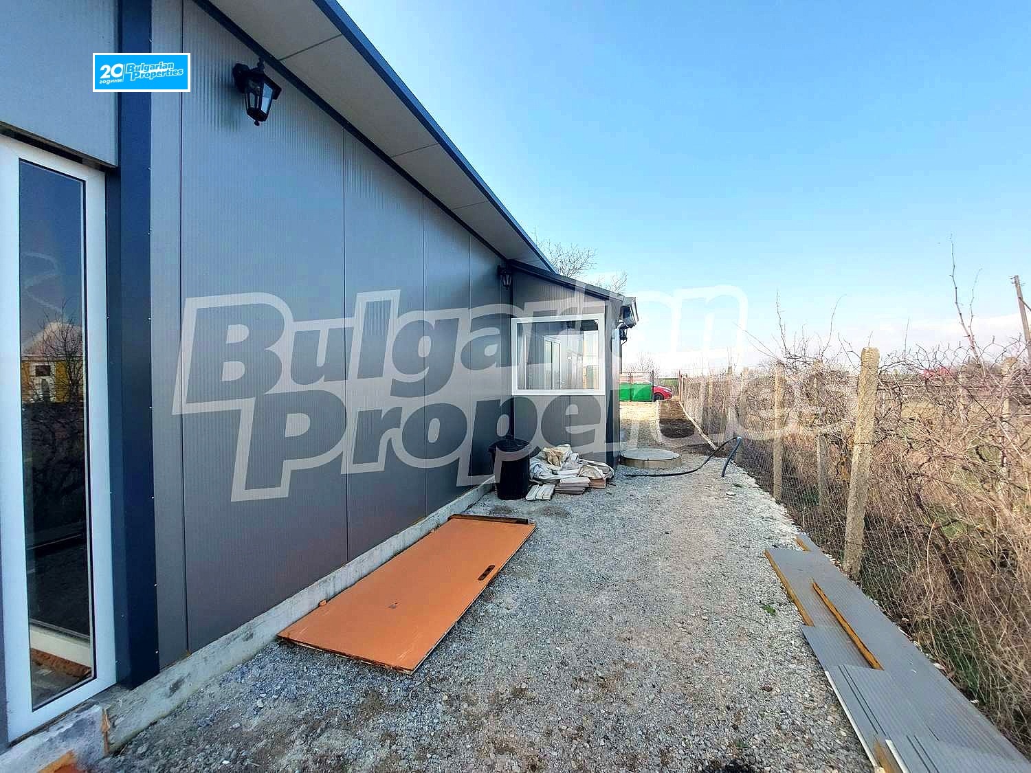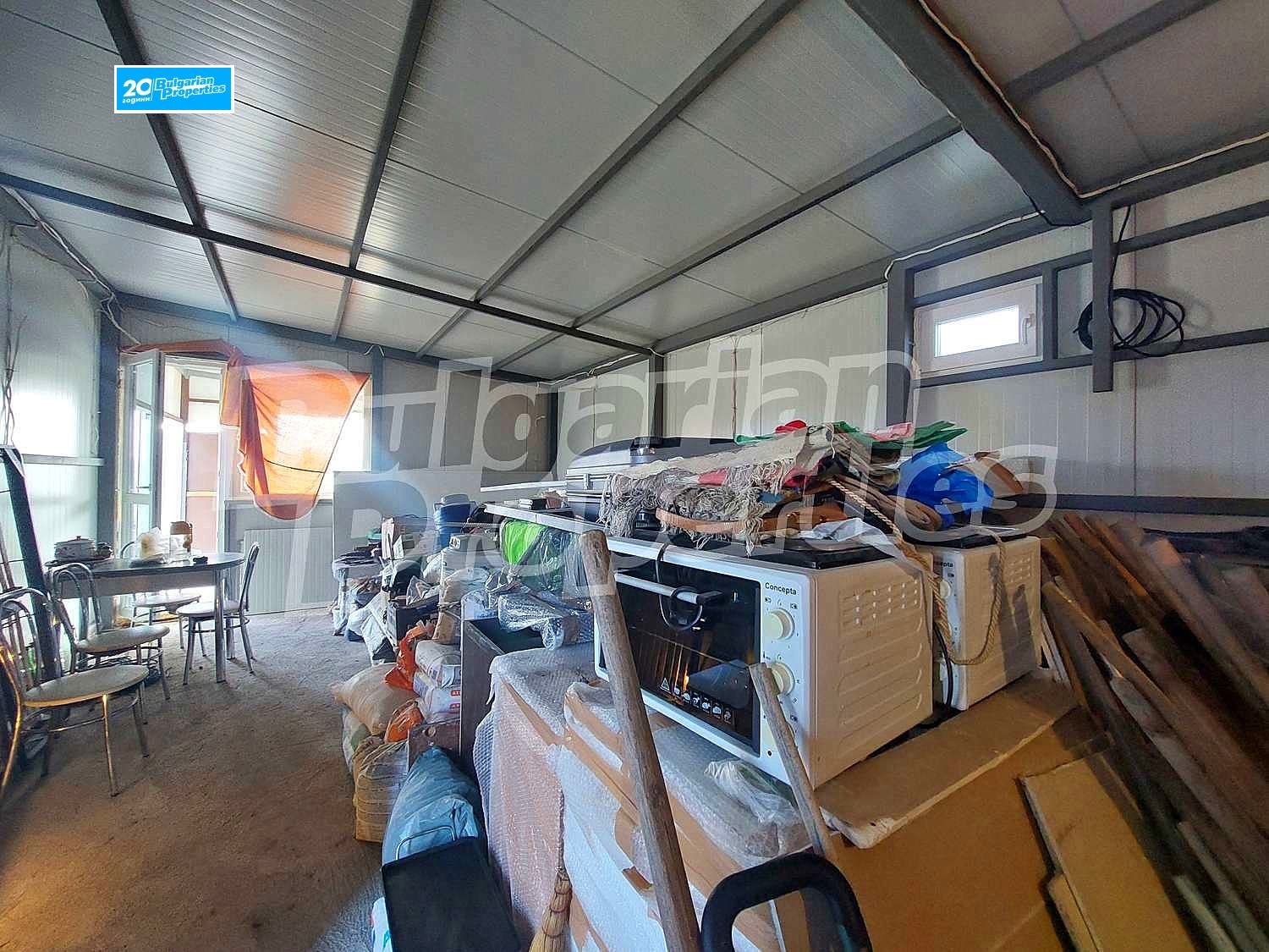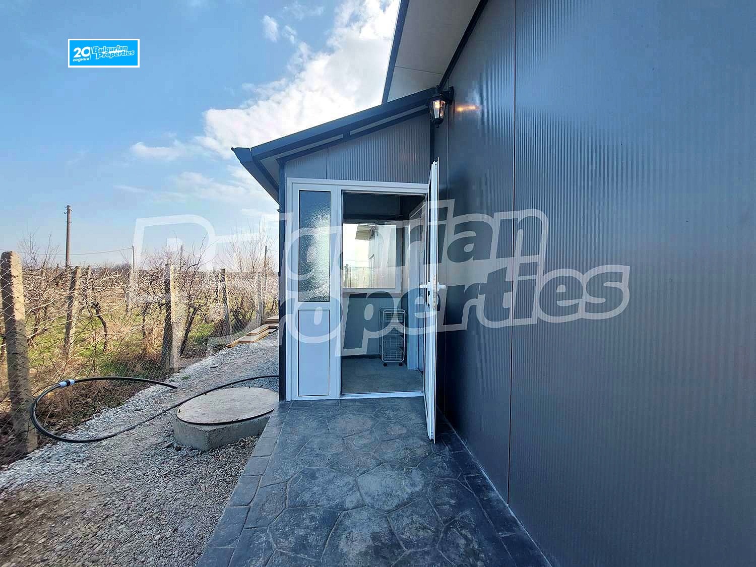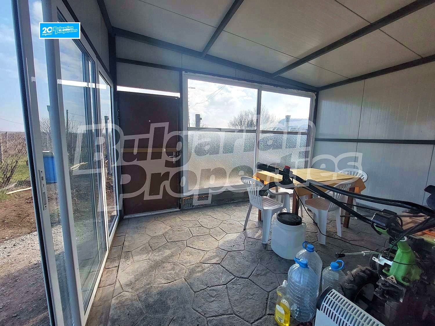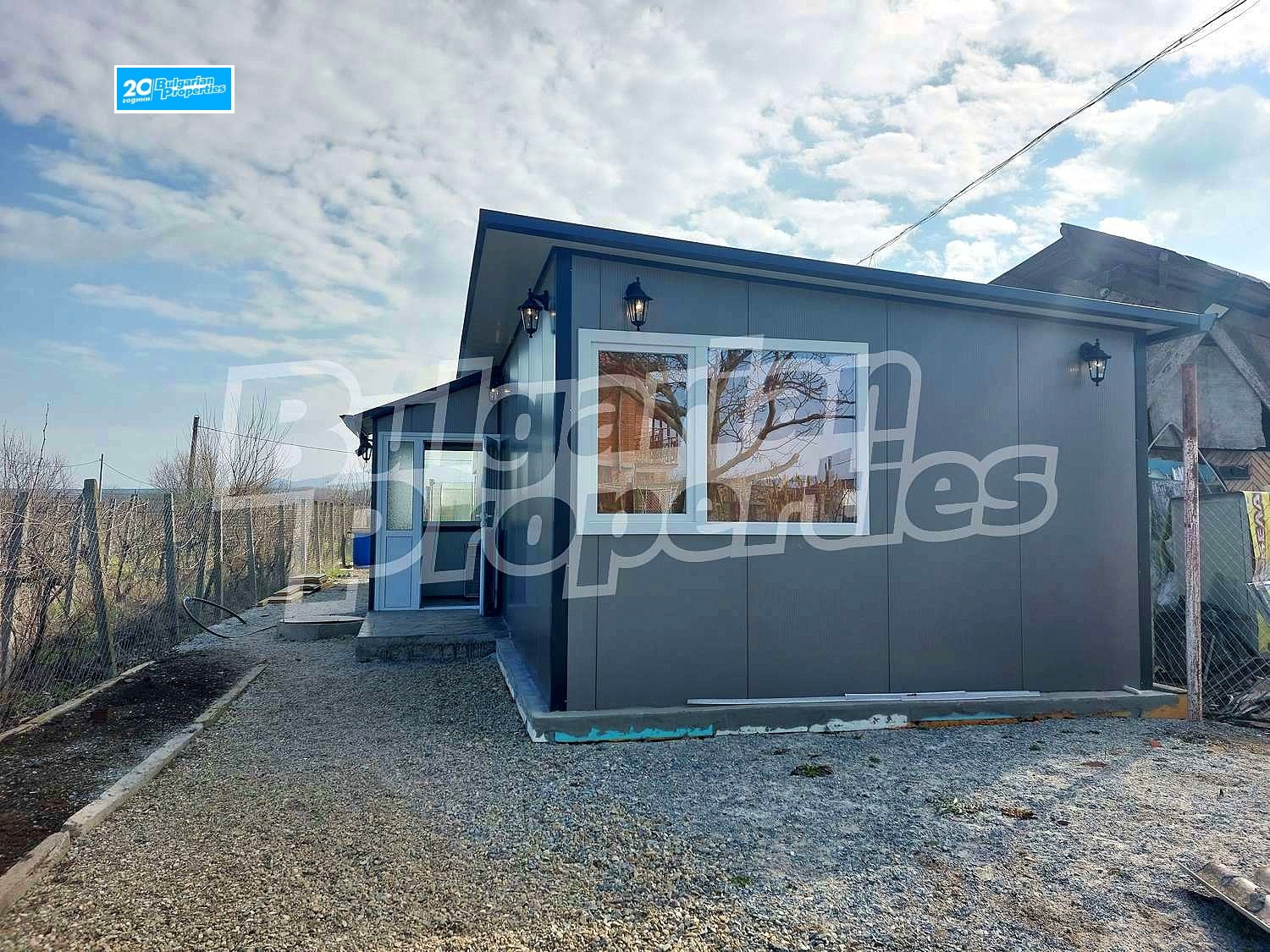 Имотът е сглобяема конструкция с площ 65 кв. м., 45 кв. м. къща и 20 кв. веранда. Постройката разполага със септична яма, както и дълбок сондаж. Има допълнително излята плоча с