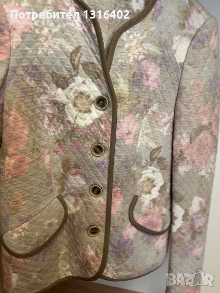 Запазено дамско пролетно сако, размер S, материя памук, полиестер и еластен. Ширина под мишници 45см, дължина 60см, рамене 40см, ръкав 64см.