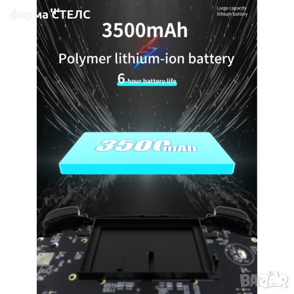 Вградена литиева батерия с голям капацитет от 3500 mAh за изключително дълго време в режим на готовност и живот на батерията. Поддържа до 6 часа игра. Съвместим със зарядно устройство C2C.