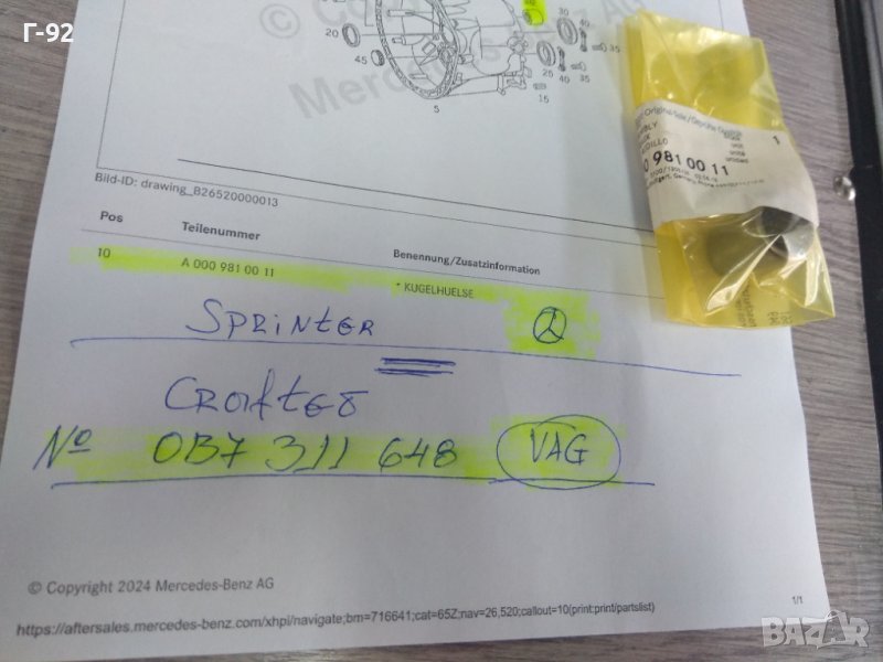 A0009816711=0B7311648**NEU**MERCEDES-BENZ=VAG**SPRINTER=CRAVTER****ЛАГЕР ЗА ИЗБИРАЧА НА СКОРОСТИТЕ**