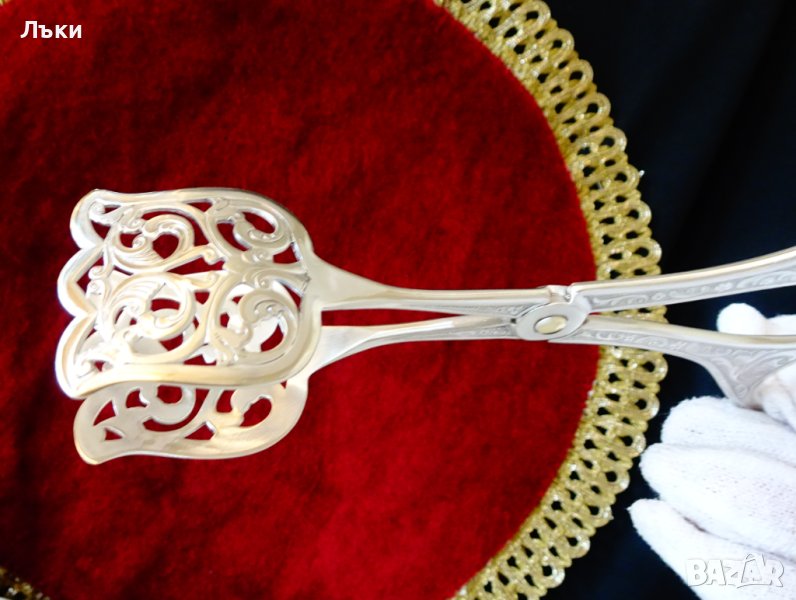 Старинна немска щипка за сервиране,дебело посребрена с 90 микрона висока проба сребро,маркирана Alpaka 90.Вълшебна