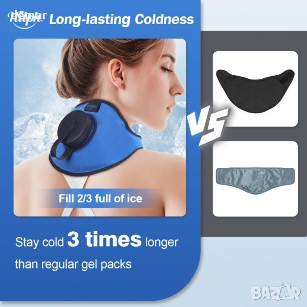 Този пакет с лед за врата предлага удобно и ефикасно решение за облекчаване на болката, като елиминира необходимостта от предварително замразяване. Просто го напълнете до две трети с лед, за да облекчите болки във врата, мускулни болки, подуване и др. Проектиран с висококачествен полиестер и покритие от плат, предотвратява кондензацията и запазва ледено студен три пъти по-дълго от стандартните пакети за лед. Неговият лек, компактен дизайн осигурява преносимост, което го прави идеален за използване във фитнеса или по време на пътуване. Дизайнът с велкро за свободни ръце позволява удобна употреба във всяка обстановка, независимо дали седите, лежите или сте в движение.