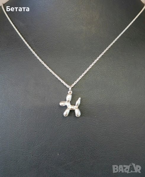 Красиво сребърно колие с висулка кученце.