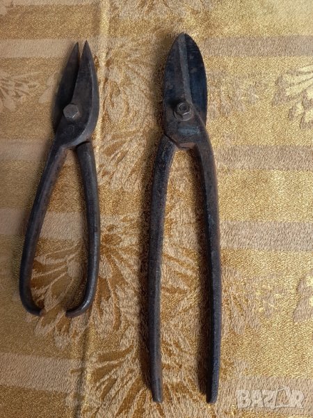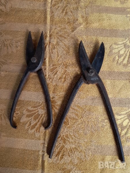 Стари ковани ножици за ламарина, състояние видно на снимките изключително запазени няма удари, маркирани,готови за работа, декор, интериор и по предназначение.Цена на голямата 35 лв,другата 30 лв.ЗАБЕЛЕЖКА ГОЛЯМАТА Е ПРОДАДЕНА.