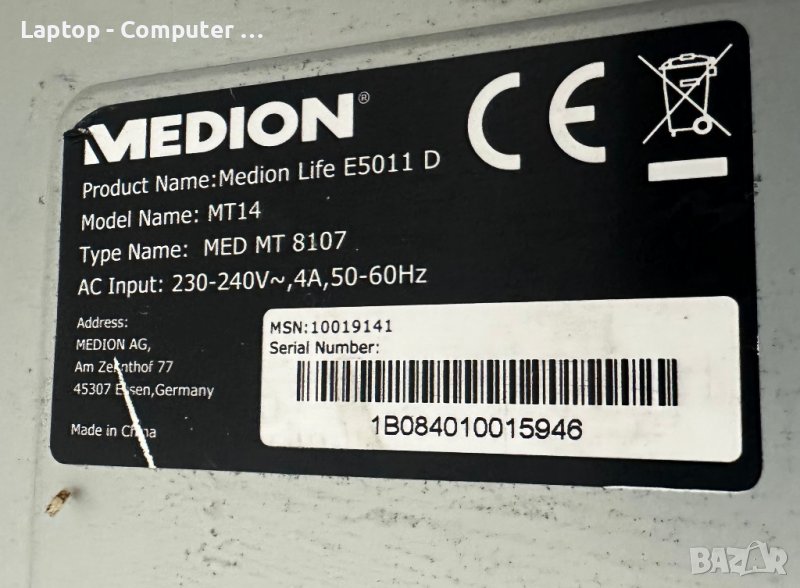 компютър на Medion, за работа, сърфиране в интернет, за обучение, за гледане на филми, за офиси и други. Компютъра е инсталиран с Windows 10 64bit с всички нужни програми и драйвери и е готов за използване. Компютъра е купен за 320евро от Германия и при докарването се получиха драскотини по кутията които се виждат на снимките, но не му пречат за работа, компютъра е ползван 816 часа само за прехвърляне на данни и сърфиране.