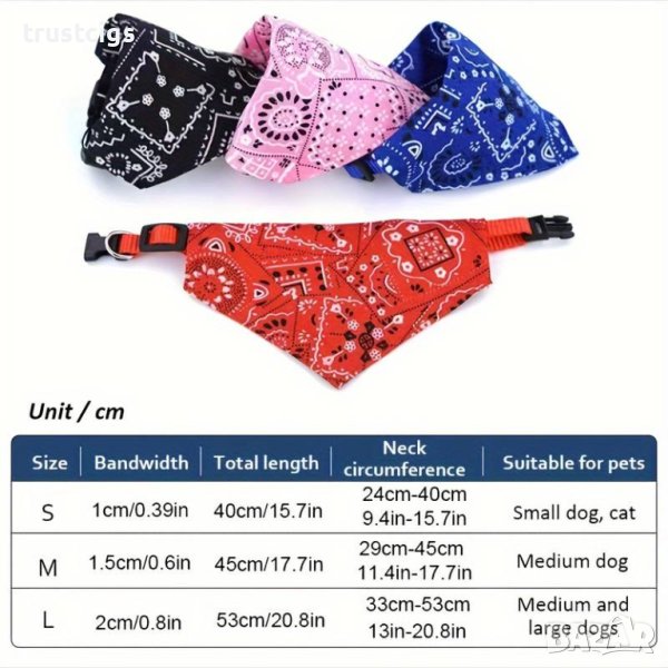 Направете вашия домашен любимец да изглежда и да се чувства страхотно с тази стилна бандана за кучета! Изработена от меки и удобни материали, тази бандана не само добавя нотка мода, но и комфорт за вашия домашен любимец.