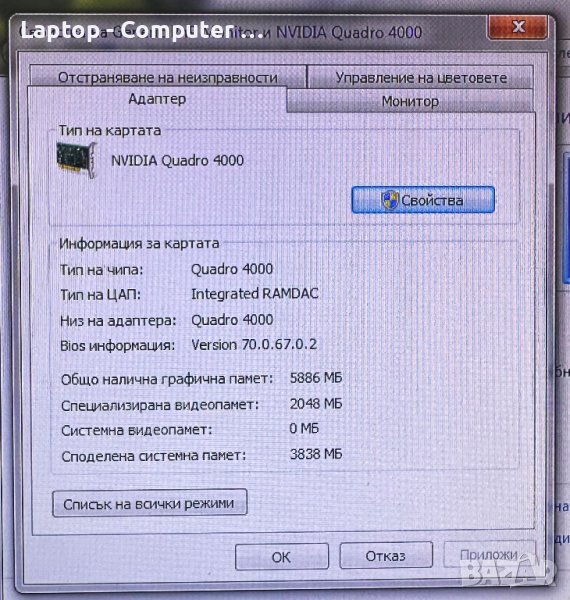 Видео карта: Nvidia Quadro 4000 2GB 256bit обща графична 6GB