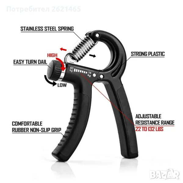 Регулируемата ръкохватка е перфектният фитнес аксесоар! Позволява ви да упражнявате мускулите на предмишницата и да засилите силата на ръкостискането си. Ръкохватката ни позволява да работим с регулируемо съпротивление от 5 до 60 кг. Това ви позволява да регулирате устойчивостта към физическите условия на трениращия и прави инструмента изключително гъвкав. Това е отличен начин за рехабилитация или укрепване на мускулите на ръката и предмишницата, които трудно се тренират с класически инструменти. Удобните дръжки, покрити с гума и пластмаса, няма да уморяват ръцете ви прекомерно.