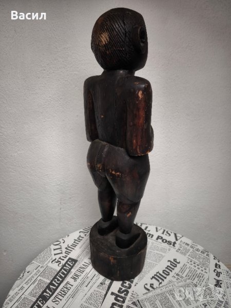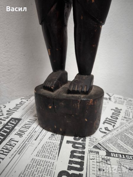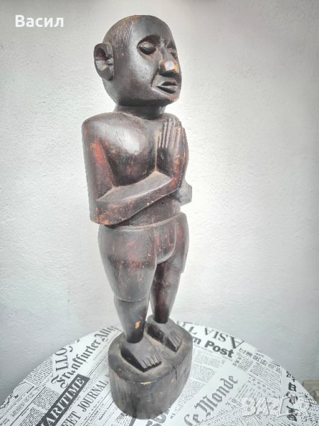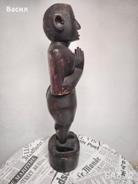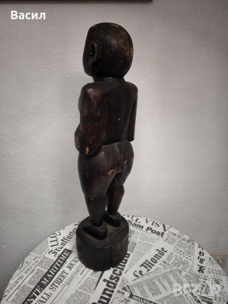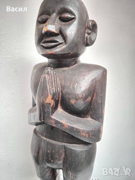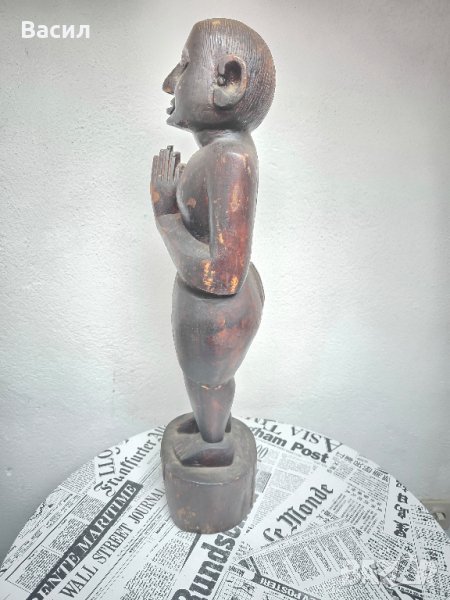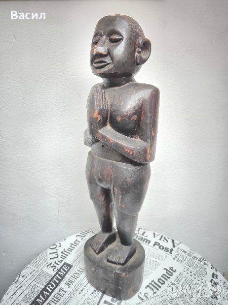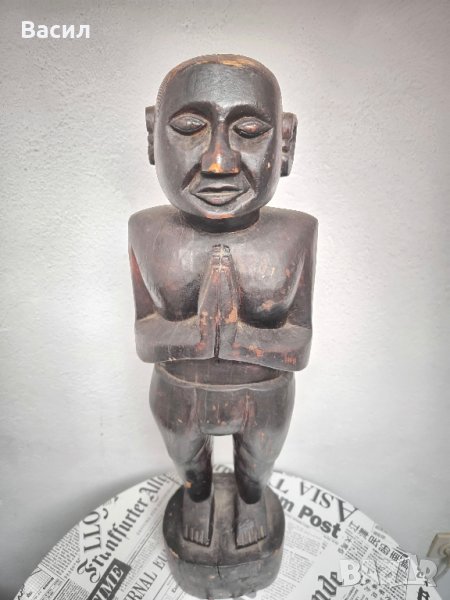 Азиатска Дърворезба "Мъжка фигура със скръстени пред гърдите ръце" - тежко дърво, резбовано и боядисано в черно.Тежко дърво Височина: 63 см - Тегло: 6,5 кг
